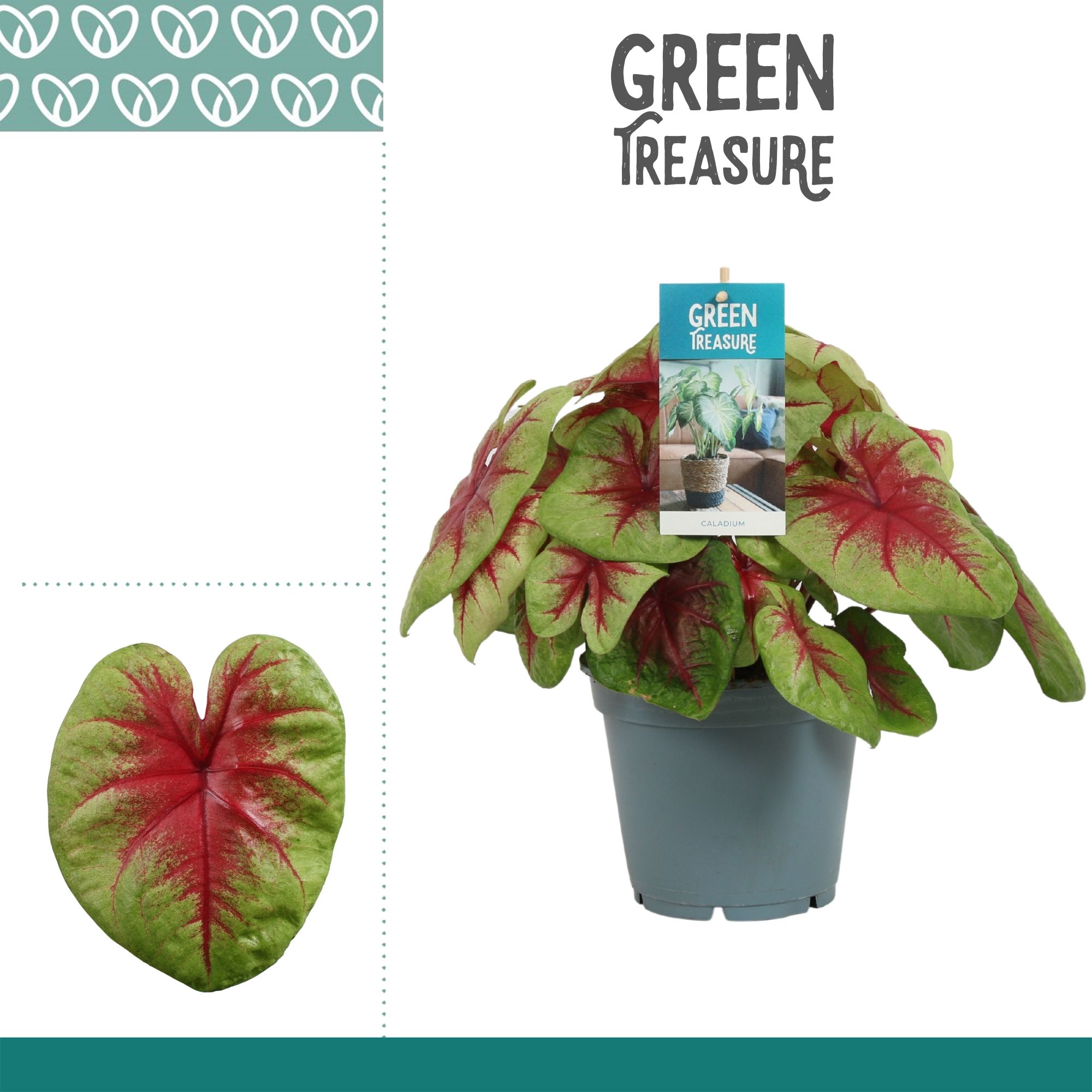 Marketingconcept Green Treasure Verzorging: Temperatuur minimaal 15 °C Potmateriaal kweekpot >80% Post Consumer Recyclaat (PCR) Certificaten MPS-GAP MPS-GAP Certificaten Socialy Qualified MPS-SQ Certificaten GLOBALG.A.P GlobalGAP Flowers & Ornamentals Certificaten MPS Quality MPS-Quality Certificaten GRASP GRASP Positieve keurcode kwaliteit met consumenten informatie Potmaat 17 cm Min planthoogte inclusief pot 40 cm Transporthoogte 55 cm Bloem/bes/vruchtkleur 1 gemengde kleuren Teeltmedium 100% veen vrij Land van herkomst Nederland Kwaliteitsgroep A1