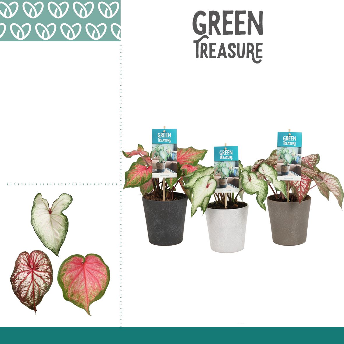 Marketingconcept Green Treasure Verzorging: Temperatuur minimaal 15 °C Potmateriaal kweekpot >80% Post Consumer Recyclaat (PCR) Certificaten MPS-GAP MPS-GAP Certificaten Socialy Qualified MPS-SQ Certificaten GLOBALG.A.P GlobalGAP Flowers & Ornamentals Certificaten MPS Quality MPS-Quality Certificaten GRASP GRASP Positieve keurcode kwaliteit met consumenten informatie Potmaat 12 cm Min planthoogte inclusief pot 25 cm Transporthoogte 40 cm Potvorm sierpot Potmateriaal ompot keramiek Teeltmedium 100% veen vrij Land van herkomst Nederland Kwaliteitsgroep A1