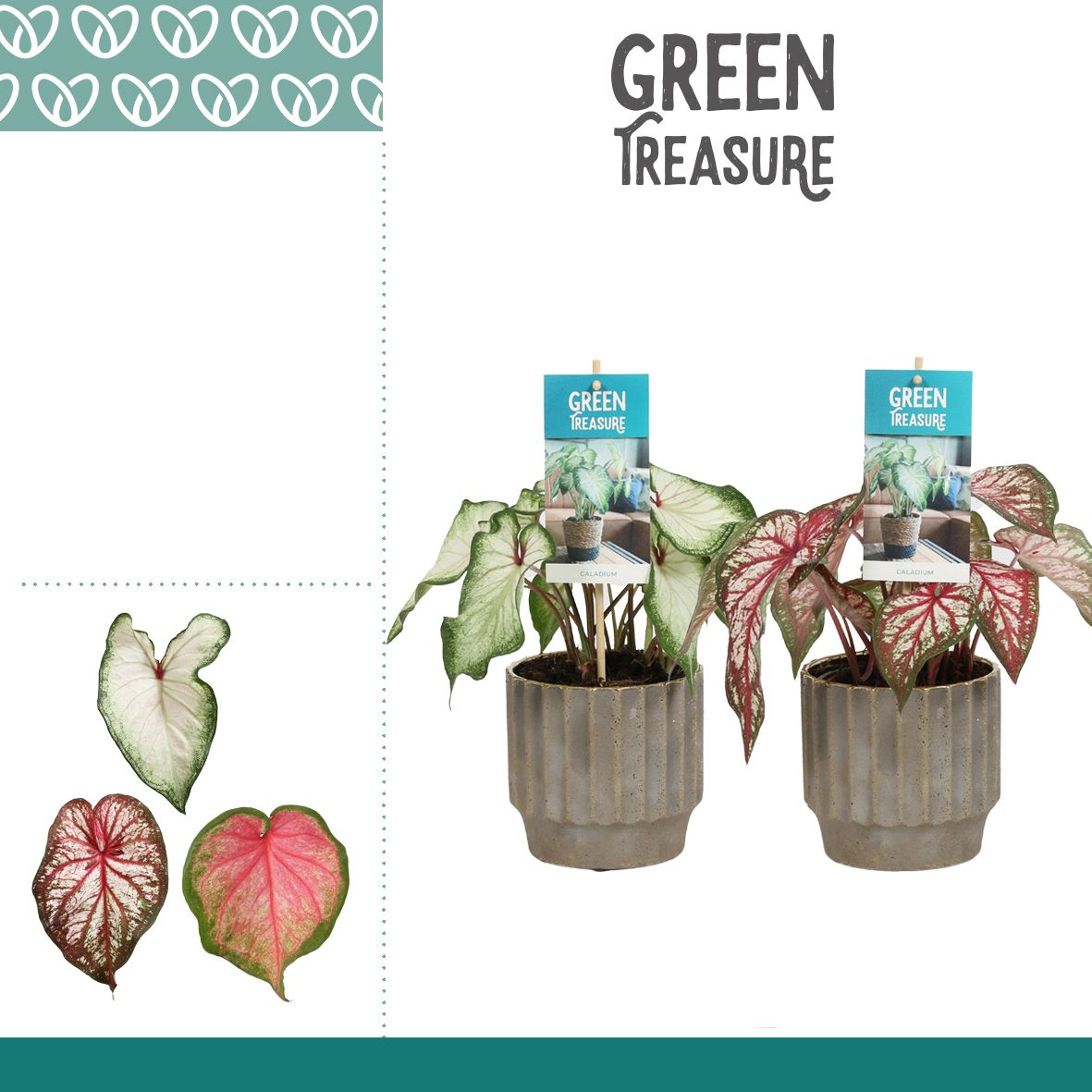 Marketingconcept Green Treasure Verzorging: Temperatuur minimaal 15 °C Potmateriaal kweekpot >80% Post Consumer Recyclaat (PCR) Certificaten MPS-GAP MPS-GAP Certificaten Socialy Qualified MPS-SQ Certificaten GLOBALG.A.P GlobalGAP Flowers & Ornamentals Certificaten MPS Quality MPS-Quality Certificaten GRASP GRASP Positieve keurcode kwaliteit met consumenten informatie Potmaat 12 cm Min planthoogte inclusief pot 25 cm Transporthoogte 40 cm Potmateriaal ompot keramiek Teeltmedium 100% veen vrij Land van herkomst Nederland Kwaliteitsgroep A1