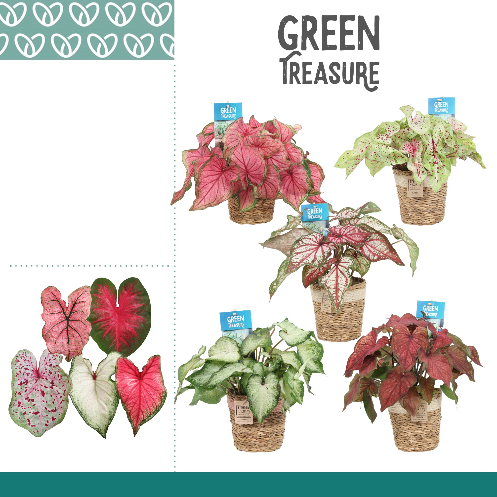 Marketingconcept Green Treasure Verzorging: Temperatuur minimaal 15 °C Potmateriaal kweekpot >80% Post Consumer Recyclaat (PCR) Certificaten MPS-GAP MPS-GAP Certificaten Socialy Qualified MPS-SQ Certificaten GLOBALG.A.P GlobalGAP Flowers & Ornamentals Certificaten MPS Quality MPS-Quality Certificaten GRASP GRASP Positieve keurcode kwaliteit met consumenten informatie Potmaat 12 cm Min planthoogte inclusief pot 25 cm Transporthoogte 40 cm Potvorm mand Potmateriaal ompot riet Teeltmedium 100% veen vrij Land van herkomst Nederland Kwaliteitsgroep A1