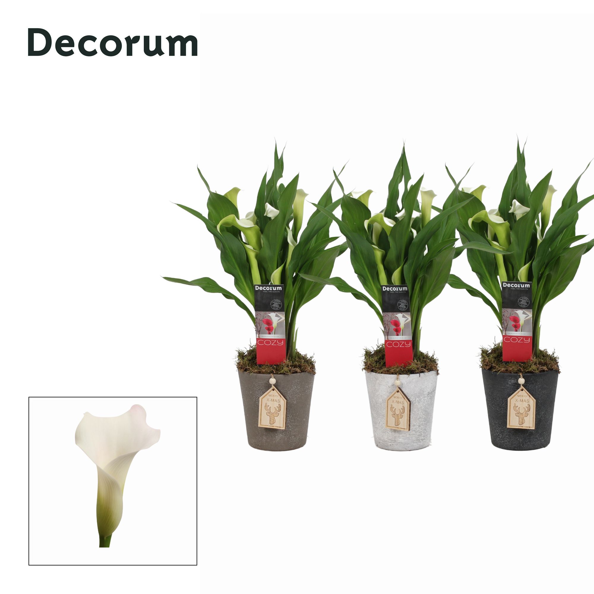 Marketingconcept Decorum Verzorging: Temperatuur minimaal 5 °C Potmateriaal kweekpot >80% Post Consumer Recyclaat (PCR) Certificaten MPS-GAP MPS-GAP Certificaten Socialy Qualified MPS-SQ Certificaten GLOBALG.A.P GlobalGAP Flowers & Ornamentals Certificaten MPS Quality MPS-Quality Certificaten GRASP GRASP Positieve keurcode kwaliteit met consumenten informatie Potmaat 12 cm Min planthoogte inclusief pot 35 cm Rijpheidsstadium 2-2 Min aantal bloemen/bloeiwijzen pot 3 Transporthoogte 50 cm Bloem/bes/vruchtkleur 1 wit Potvorm sierpot Potmateriaal ompot keramiek Teeltmedium 100% veen vrij Land van herkomst Nederland Kwaliteitsgroep A1 Themadagen Kerst Producentengroepen Decorum