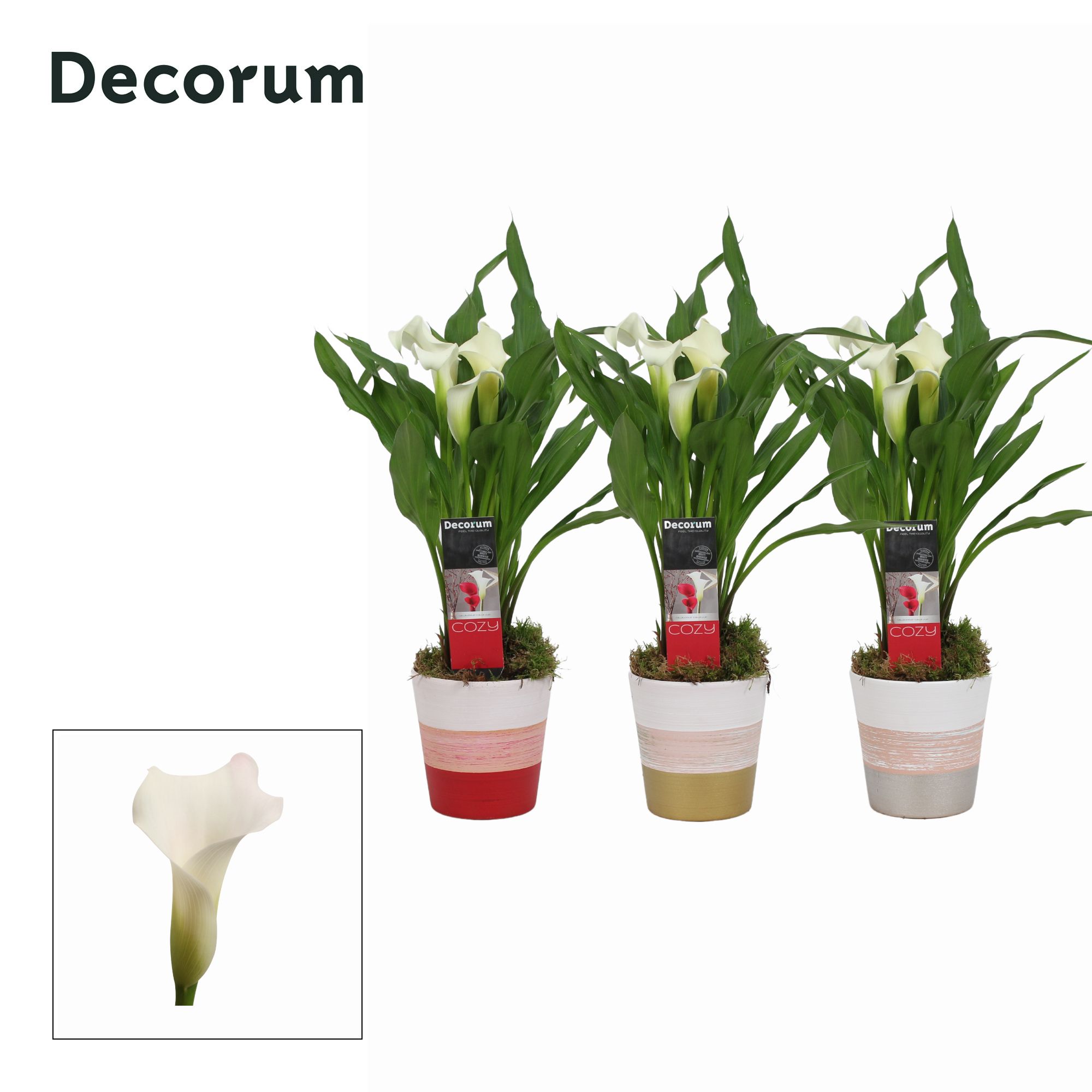 Zantedeschia (Calla) Wit in Ompot Wendy KERST (Decorum)