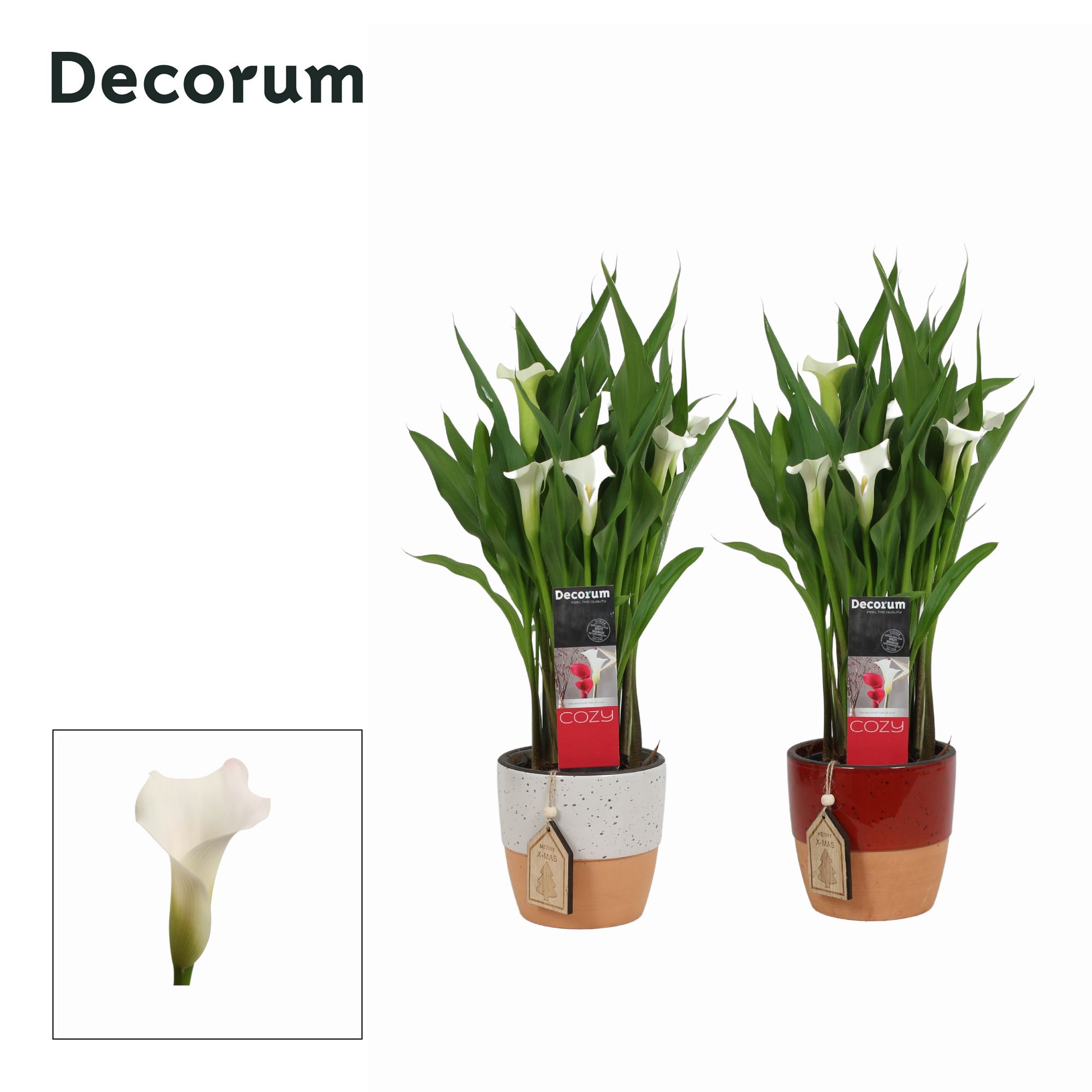 Zantedeschia (Calla) Wit in Ompot Maeve KERST (Decorum)
