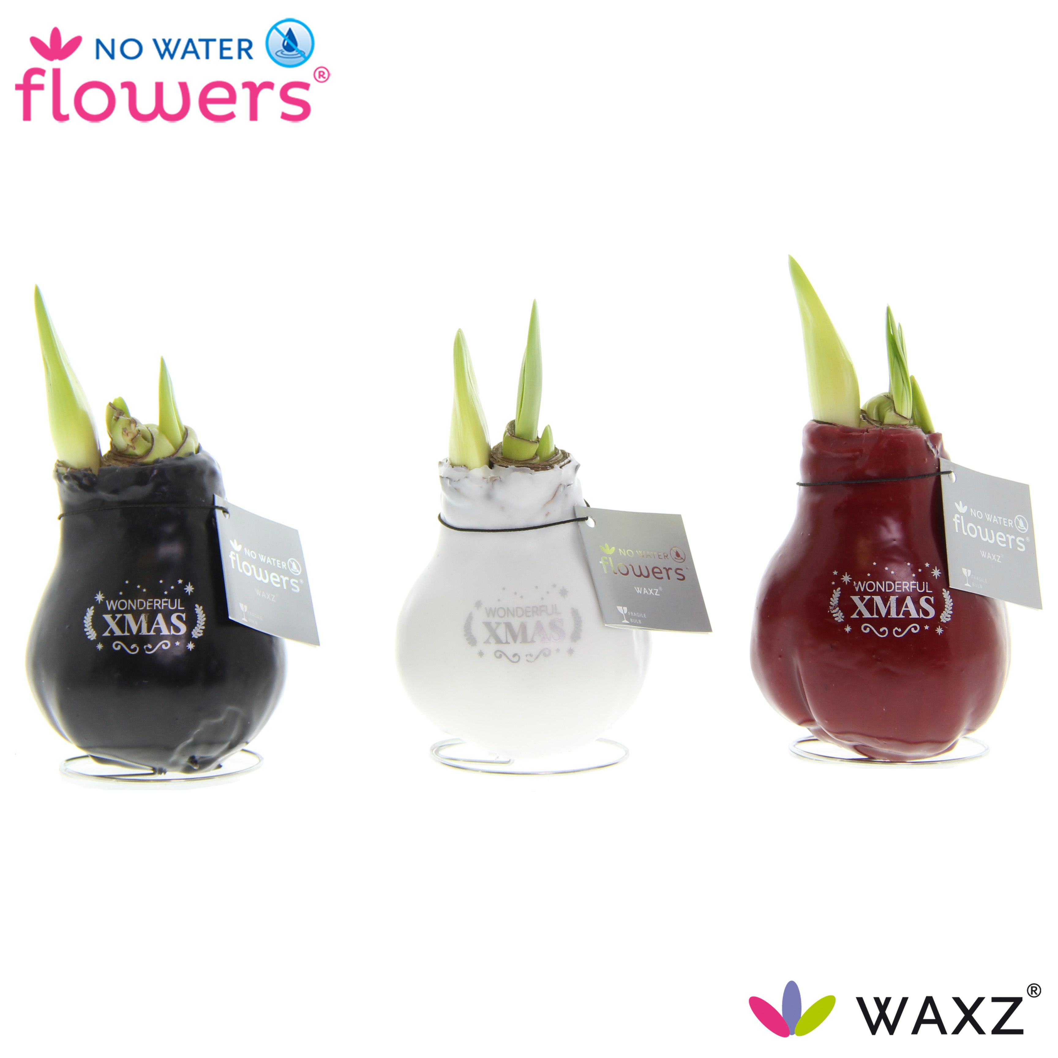 Marketingconcept No Water Flowers Positieve keurcode kwaliteit met consumenten informatie Potmaat niet van toepassing Min planthoogte inclusief pot 20 cm Rijpheidsstadium 1-1 Minimum aantal takken per plant 2 Bolomvang 32 cm Bloem/bes/vruchtkleur 1 rood Teeltmedium 100% veen vrij Land van herkomst Nederland Minimum planthoogte exclusief pot 15 cm Kleurbehandeld gemengde kleuren Kwaliteitsgroep A1 Themadagen Kerst