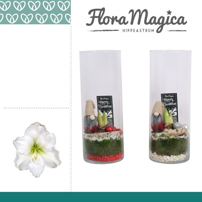 Amaryllis Wit 2 Knop in Gaby Cilinderglas KERST