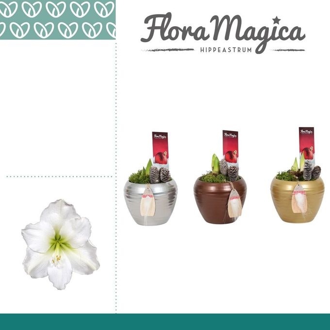 Marketingconcept Flora Magica Verzorging: Temperatuur minimaal 5 °C Potmateriaal kweekpot >80% Post Consumer Recyclaat (PCR) Certificaten MPS-GAP MPS-GAP Certificaten Socialy Qualified MPS-SQ Certificaten GLOBALG.A.P GlobalGAP Flowers & Ornamentals Certificaten MPS Quality MPS-Quality Certificaten GRASP GRASP Positieve keurcode kwaliteit met consumenten informatie Potmaat 12 cm Min planthoogte inclusief pot 25 cm Rijpheidsstadium 2-2 Minimum aantal takken per plant 2 Transporthoogte 40 cm Bloem/bes/vruchtkleur 1 wit Potvorm sierpot Potmateriaal ompot keramiek Teeltmedium 100% veen vrij Land van herkomst Nederland Kwaliteitsgroep A1 Themadagen Kerst