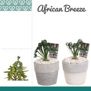 Marketingconcept African Breeze Verzorging: Temperatuur minimaal 5 °C Potmateriaal kweekpot >80% Post Consumer Recyclaat (PCR) Certificaten MPS-GAP MPS-GAP Certificaten Socialy Qualified MPS-SQ Certificaten GLOBALG.A.P GlobalGAP Flowers & Ornamentals Certificaten MPS Quality MPS-Quality Certificaten GRASP GRASP Positieve keurcode kwaliteit met consumenten informatie Potmaat 12 cm Min planthoogte inclusief pot 25 cm Rijpheidsstadium 1-1 Minimum aantal takken per plant 1 Potmateriaal ompot keramiek Teeltmedium 100% veen vrij Land van herkomst Nederland Kwaliteitsgroep A1