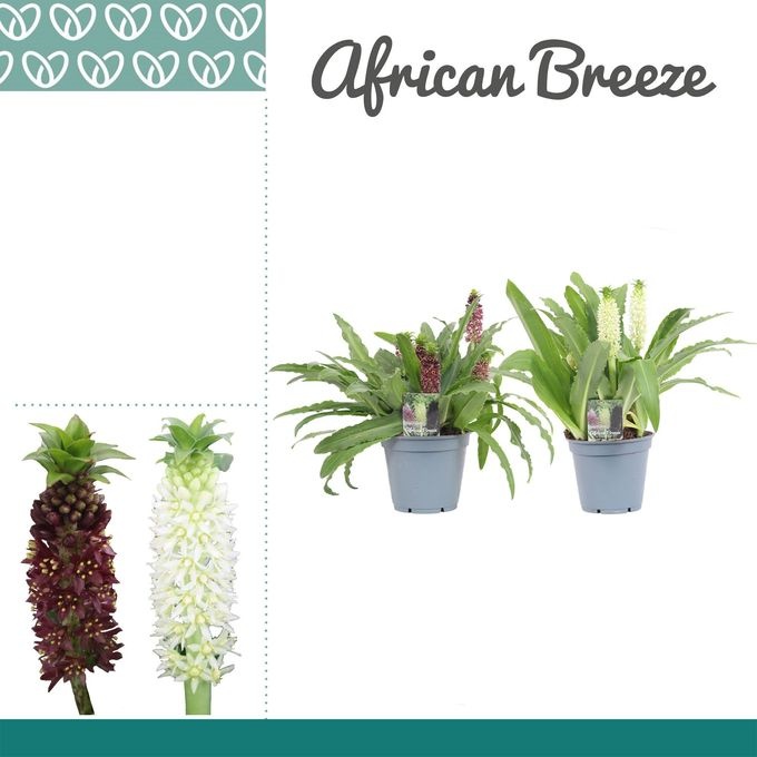 Marketingconcept African Breeze Verzorging: Temperatuur minimaal 5 °C Potmateriaal kweekpot >80% Post Consumer Recyclaat (PCR) Certificaten MPS-GAP MPS-GAP Certificaten Socialy Qualified MPS-SQ Certificaten GLOBALG.A.P GlobalGAP Flowers & Ornamentals Certificaten MPS Quality MPS-Quality Certificaten GRASP GRASP Positieve keurcode kwaliteit met consumenten informatie Potmaat 17 cm Min planthoogte inclusief pot 30 cm Rijpheidsstadium 2-2 Land van herkomst Nederland Barcode op hoes Kwaliteitsgroep A1 Producentengroepen African Breeze